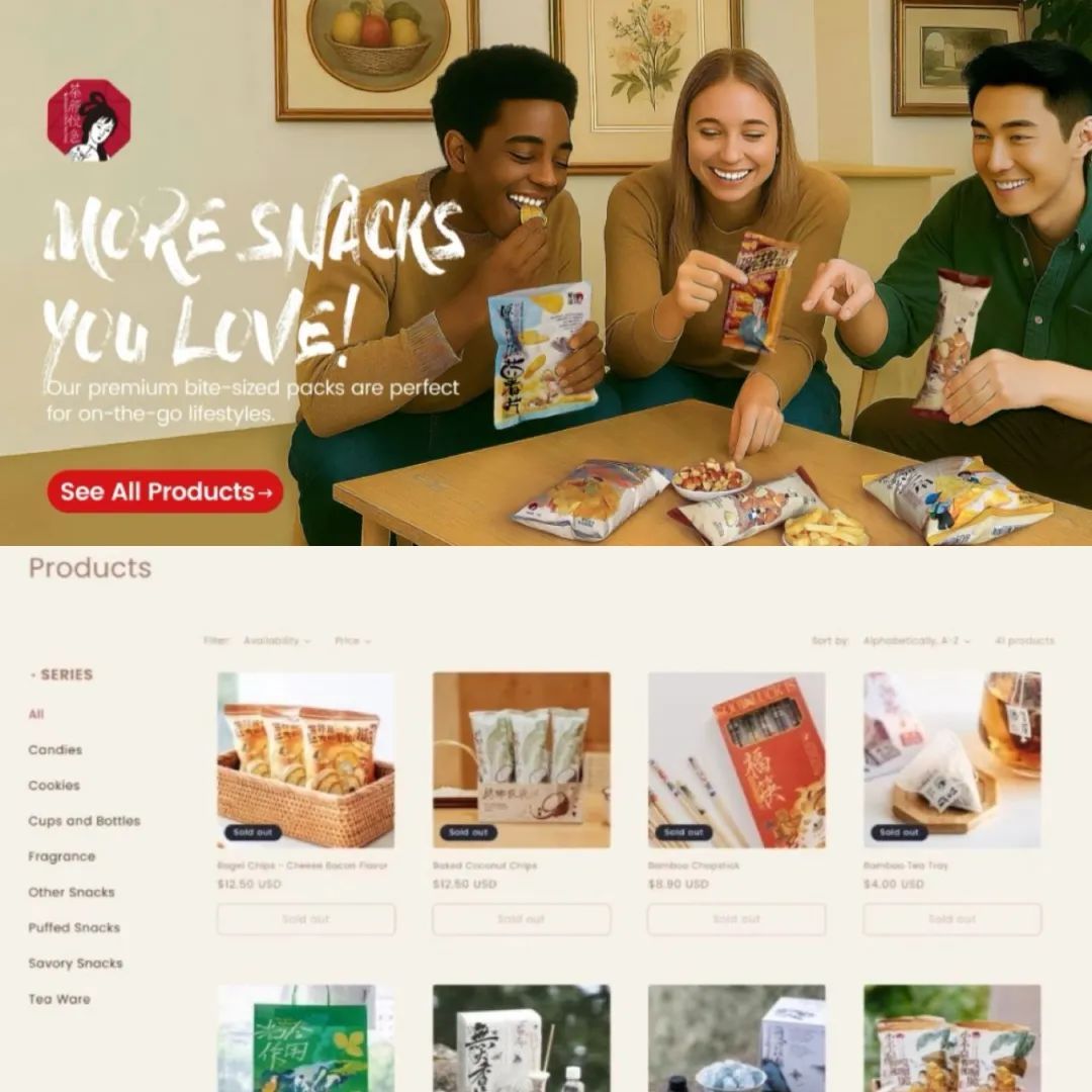 Coincidentally, in the same month, Chayan Yuese quietly opened an online store in the United States using Shopify's independent site, and simultaneously launched on Amazon and TikTok Shop, selling snacks like pecans and dried fish. And the tea I drank was after I ordered "Yi Wen San Bu Zhi," the staff cheerfully called out: "Master, your drink is ready~"