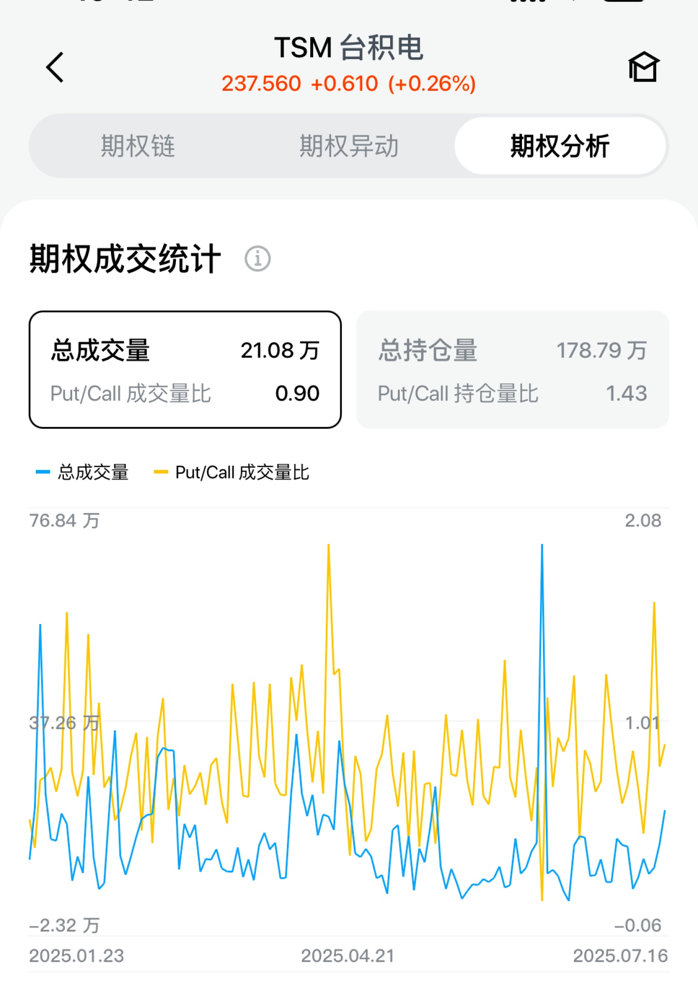 On July 16, Eastern Time, the options market for $Taiwan Semiconductor(TSM.US) showed a clear bullish bias, with options traders increasing their bullish bets. Data shows that the cost of hedging against a decline in TSMC's stock price has fallen to its lowest level since January.