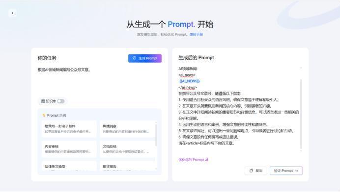 For users with no prompt-writing experience, they can directly generate structured prompts on the platform: