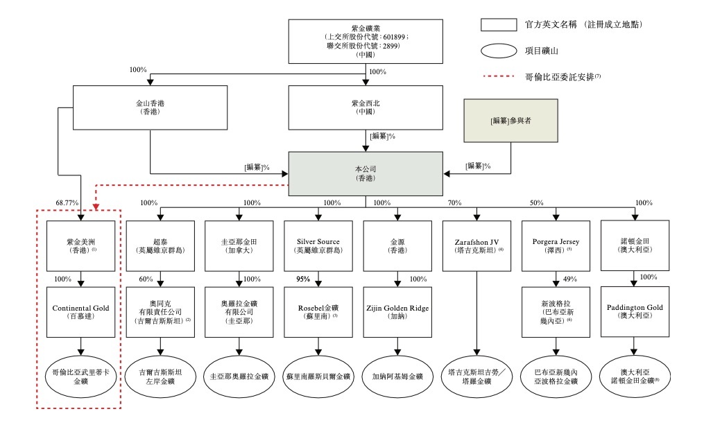 The company's controlling shareholder, Zijin Mining Group, was established on September 6, 2000, and was listed on the Hong Kong Stock Exchange (stock code: 02899) in 2003 and the Shanghai Stock Exchange (stock code: 601899) in 2008. Zijin Mining indirectly holds 100% of the shares of Zijin Gold International through subsidiaries and is expected to retain majority control after the listing.
