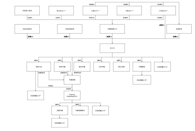 As of the latest practicable date, Linglong Group holds approximately 40.09%, and Yingcheng Trading holds about 13.76%. After the H-share issuance, the Wang family (Wang Xicheng, Zhang Guangying, Wang Feng, Wang Lin) will directly and indirectly control approximately 45.85% of the voting rights, forming the controlling shareholder group.