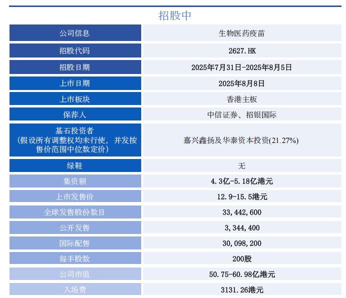 The company was founded in 2015 and is headquartered in Taizhou, Jiangsu. It is dedicated to the R&D, manufacturing, and commercialization of innovative vaccines and traditional vaccines using new technological methods. The company currently has two core products (quadrivalent influenza virus subunit vaccine and freeze-dried human rabies vaccine) and 11 other vaccines in development, covering multiple disease areas with significant vaccination demand.