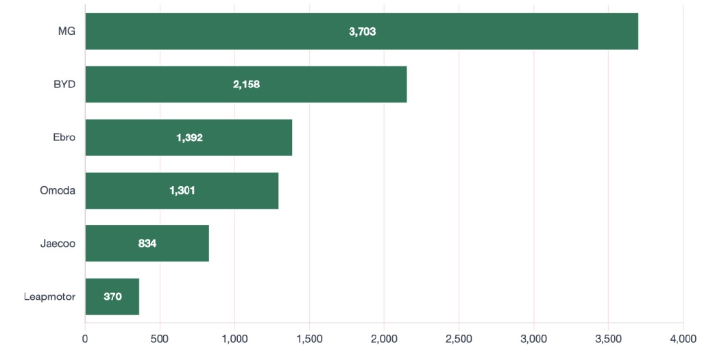 In a market traditionally led by strong brands like Toyota, Volkswagen, and SEAT, Chinese brands are making initial inroads primarily with compact electric vehicles and mid-size electric SUVs.