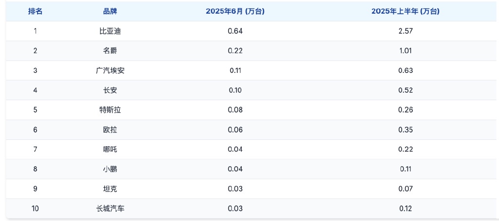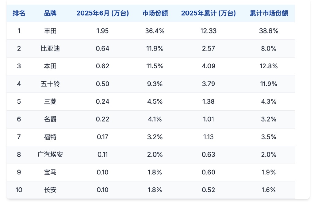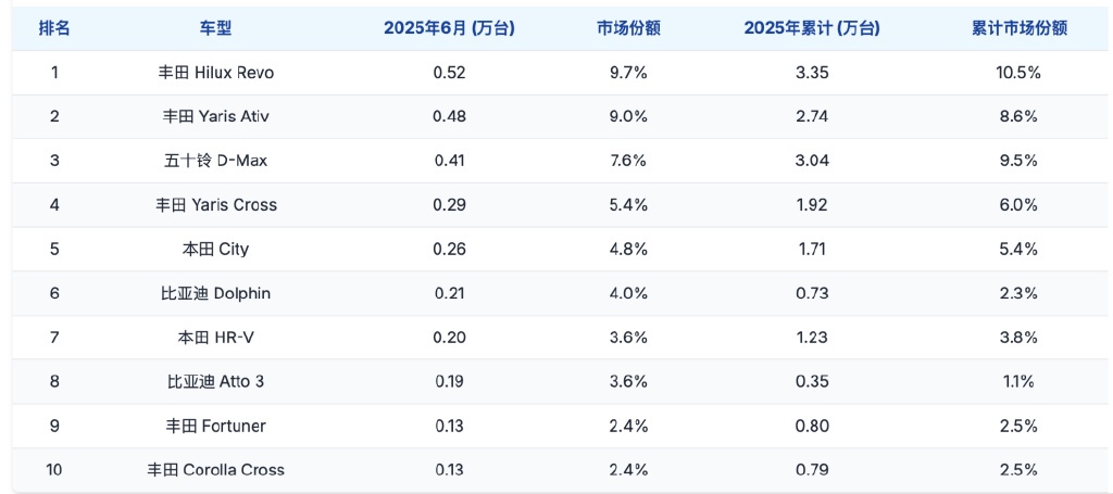 Chinese brands performed particularly well in Thailand's June 2025 market.BYD, GAC Aion, Changan, MG, Ora, XPeng, Geely, Denza, Leapmotor, Neta, ZEEKR, and Great Wall all achieved varying degrees of sales growth, with their collective market share approaching 30%.