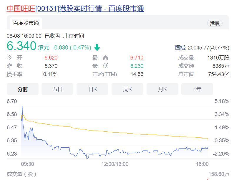 2022 年 8 月 8 日收盘,旺旺微跌之态报收 6.340 港元/股,总市值 754.43 亿港元,相较巅峰时期的 1700 亿港元市值,蒸发逾千亿,看来野性消费与网络呼声似乎并没有撑起旺旺的股价,问题到底出在哪?
