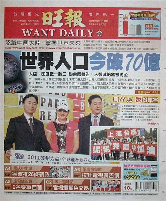 2009 年 8 月 11 日,蔡衍明更创办了《旺报》,该报宗旨是让引导台湾民众以当中国人为荣,所以报刊头版位置都能看到 “两岸统一” 等醒目标语,足见旺旺集团自上而下对社国的热爱与重视,一如蔡衍明所言,中国市场才成就了旺旺。