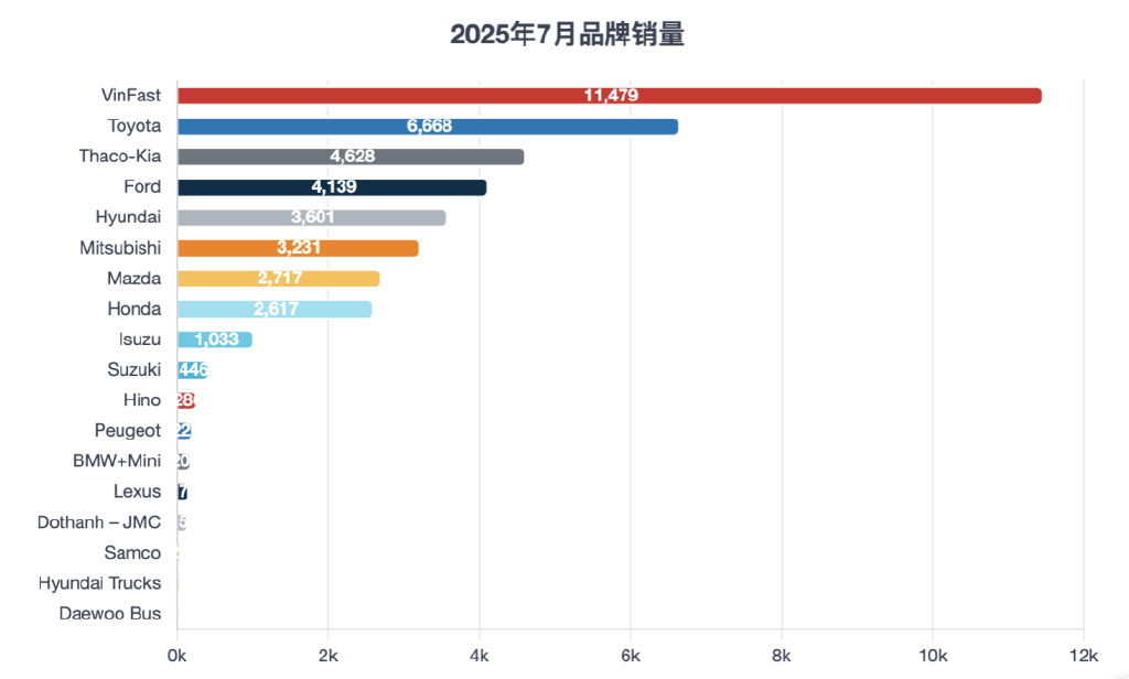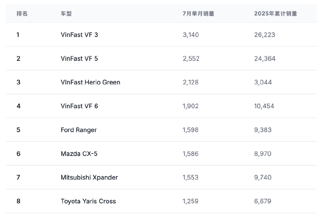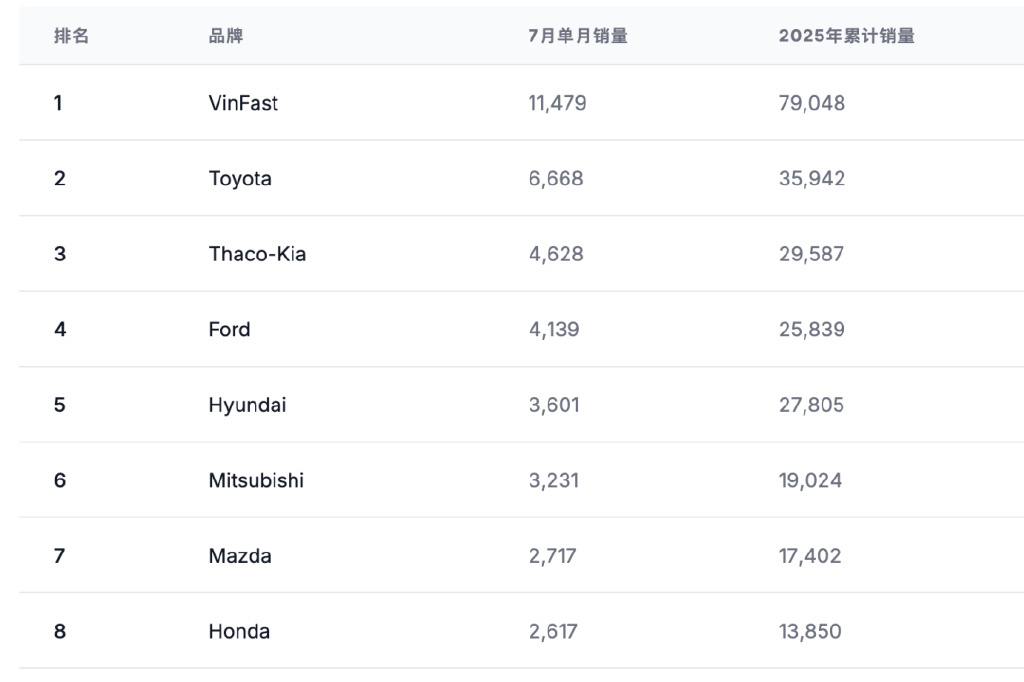 The core logic of the Vietnamese car market over the past two decades has been foreign capital dominance—Toyota, Hyundai, Mitsubishi, and Kia formed the mainstream choices, with local brands more as a backdrop. But the July report indicates that the focus of Vietnamese cars is being rewritten by local manufacturers.