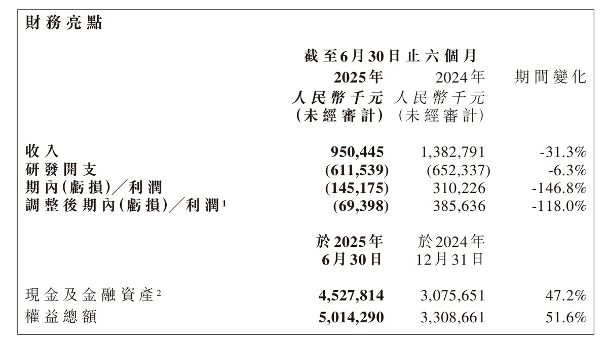 Looking solely at the core operating indicators in the financial report, the performance is not ideal: revenue for the first half of the year was RMB 950 million, a year-on-year decrease of 31.3%, and net profit turned from profit to loss, with a loss of RMB 145 million during the period.