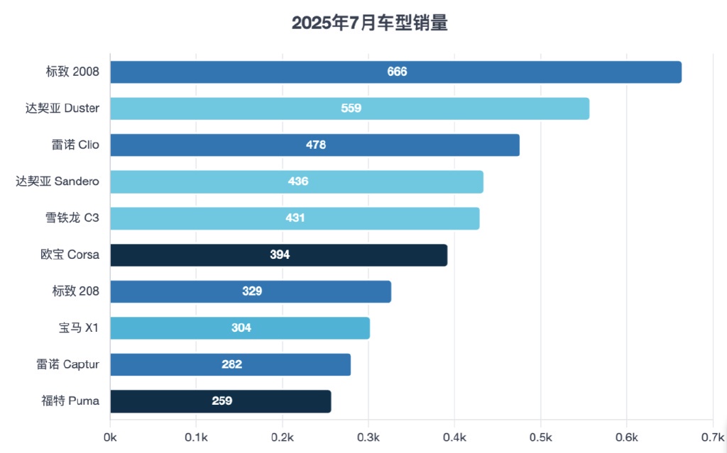 In terms of models, the Peugeot 2008 remains the top seller, but its sales have dropped by 20% year-on-year. Meanwhile, the growth of the Dacia Duster and Citroën C3 signals a new market order.