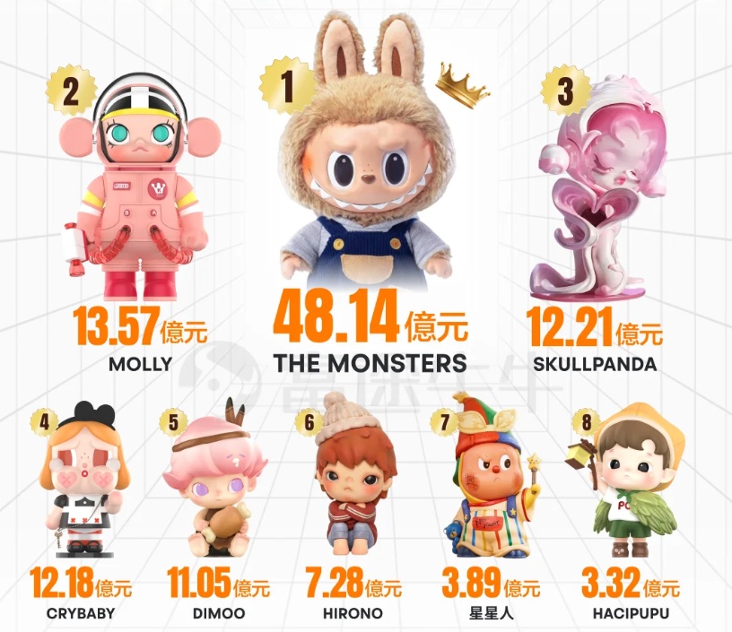 Moreover, Pop Mart's IP matrix is forming a healthy 'one superpower, multiple strong players' pattern. In addition to THE MONSTERS, four other IPs—MOLLY, SKULLPANDA, CRYBABY, and DIMOO—each generated over 1 billion yuan in revenue.