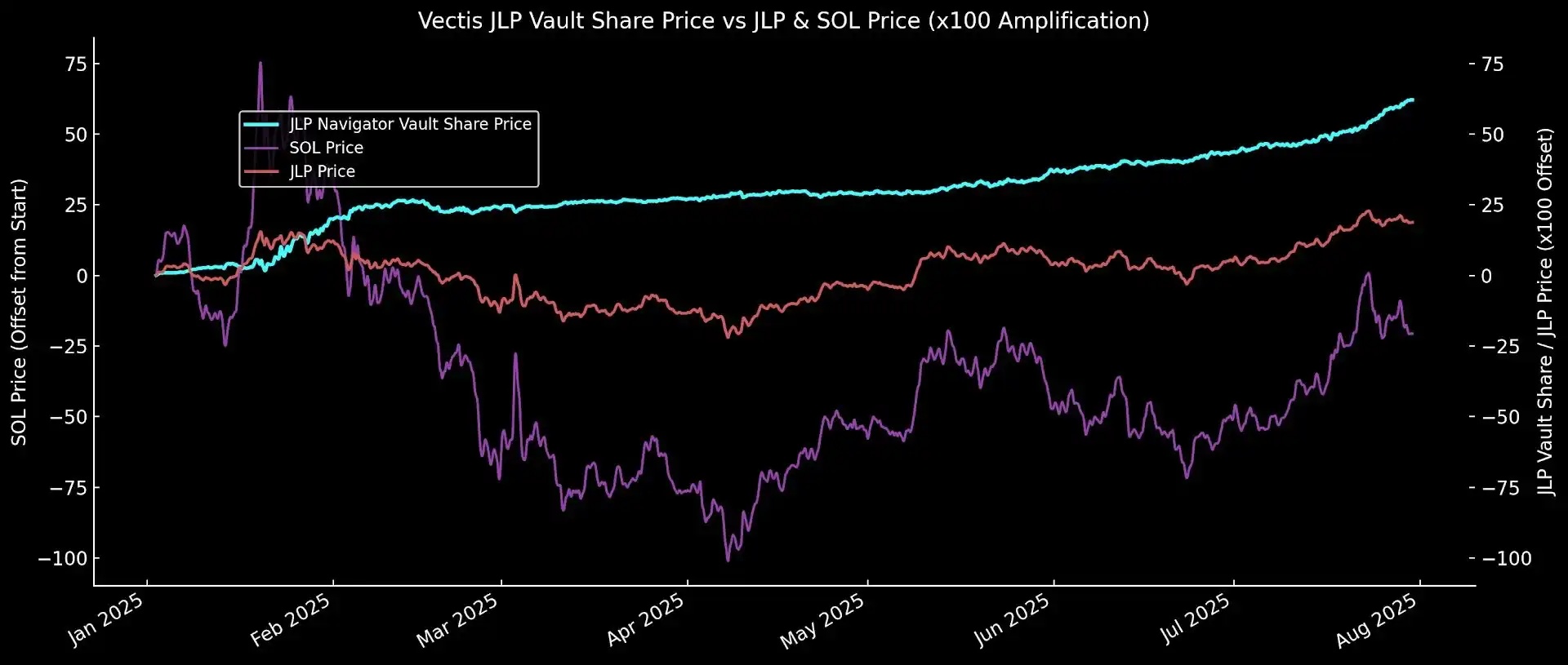 In August 2025, Vectis Finance announced the launch of the JLP HyperLoop Vault strategy. This strategy iterates on JLP Navigator, switching the hedging platform from Drift to Hyperliquid, delivering a more efficient yield-amplification solution. The specifics: