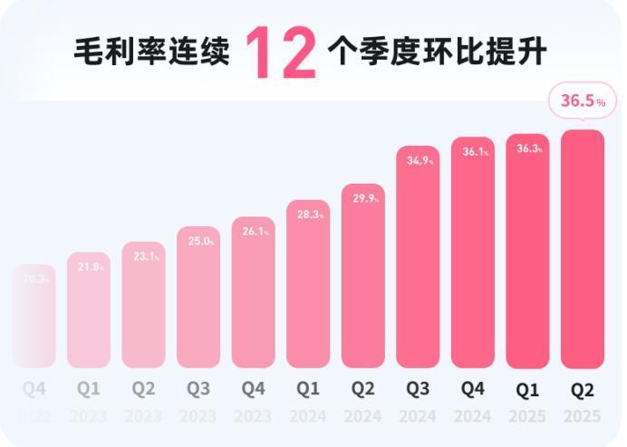 Second, the gross margin for this quarter rose to 36.5%, up from 29.9% in the same period last year, marking 12 consecutive quarters of sequential growth. Bilibili expects its gross margin to reach 37% in Q4, with a long-term target of 40-50%.