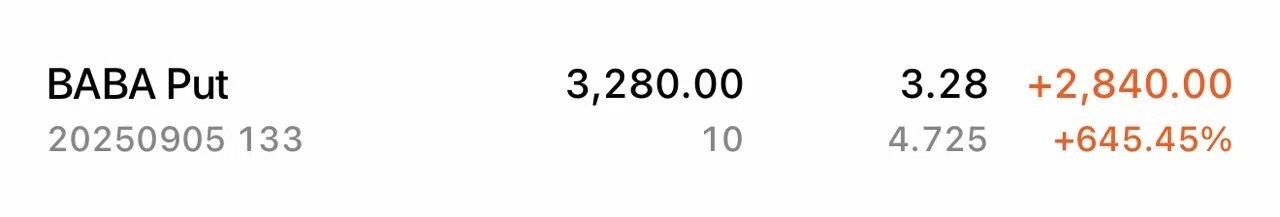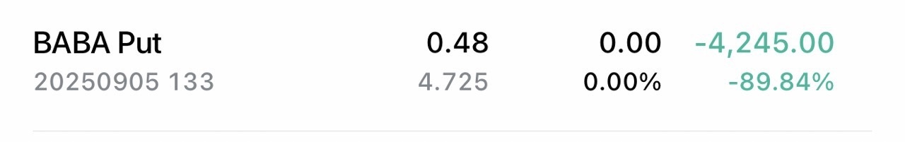 After tasting success, I went all-in on options, ignoring all risks. When Alibaba was about to report earnings, I bought 5 puts at 905, betting on a drop. When things didn’t go as planned, I doubled down instead of cutting losses, adding another 5 puts. The result? $4,000 turned into $100 by September 5th.