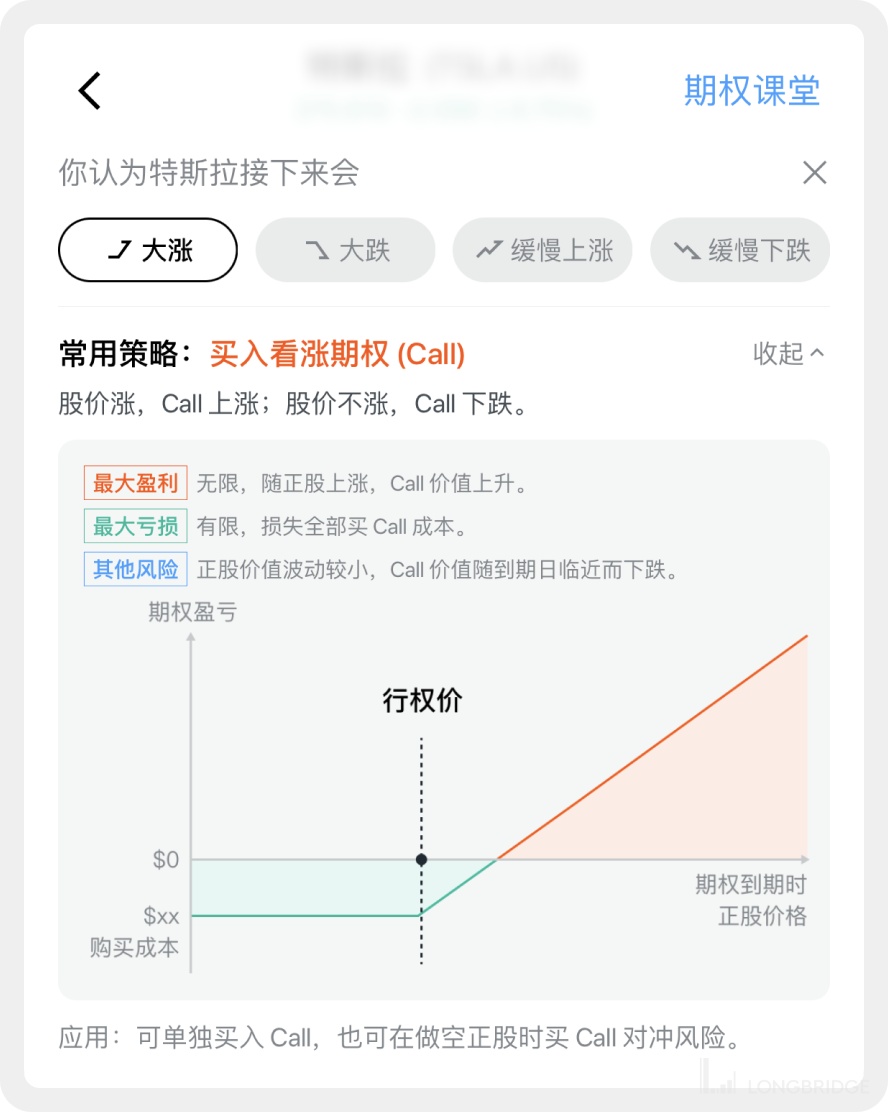 个股详情页 - 期权链页面增加投教课程,大家可以根据自己对未来正股走势的判断选择相应的课程学习期权策略