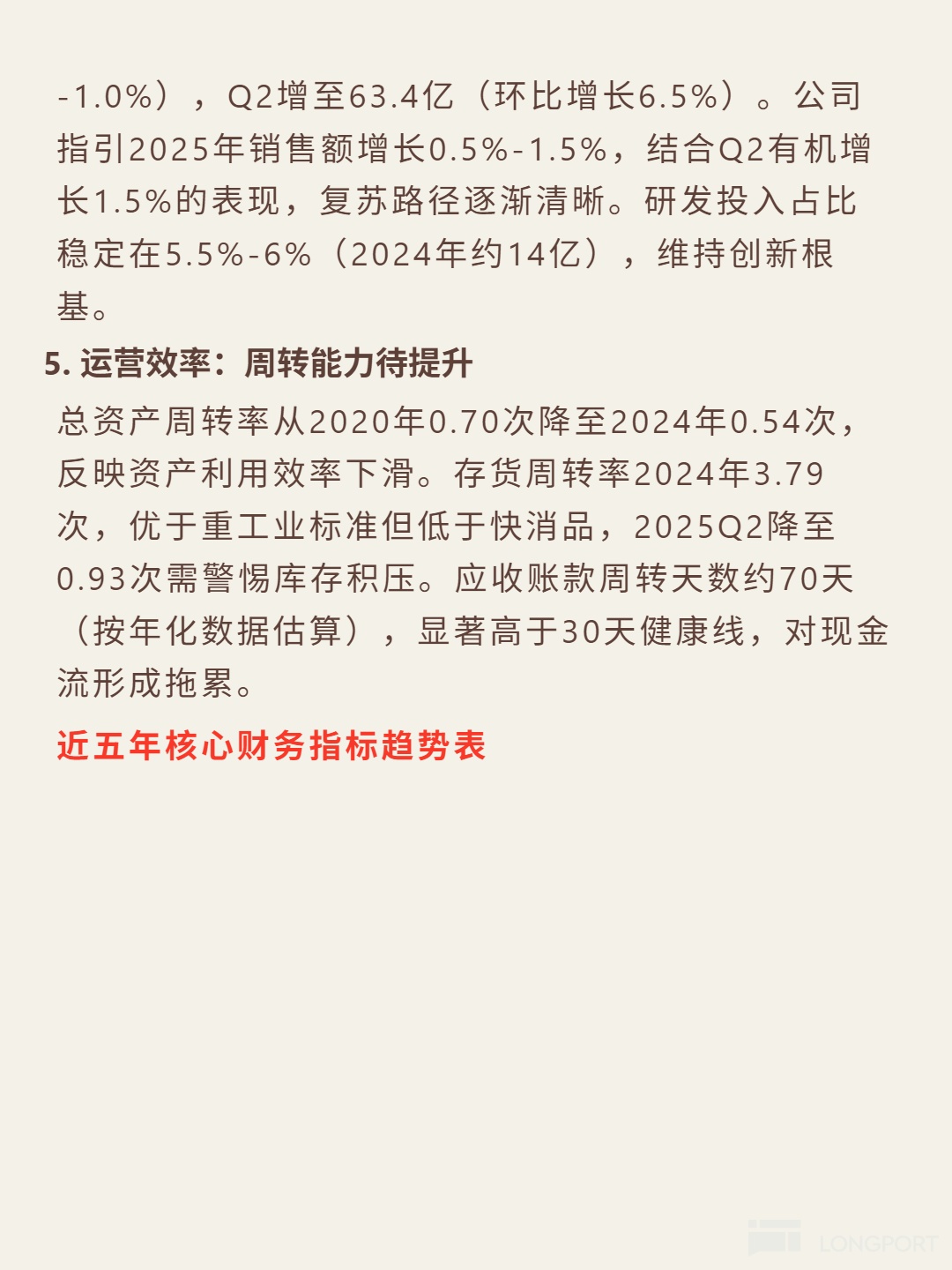 📈 Financial highlights: In 2024, the net sales margin was 16.98%, significantly outperforming the manufacturing industry average of 5%-15%; gross margin rebounded from 41.02% in 2024 to 41.76% in Q2 2025, showing an improving trend. The debt-to-asset ratio reached 88.55% in Q2 2025, far exceeding the safe threshold of 40%-60% for manufacturing, with a current ratio of 1.72 but a quick ratio of only 1.20, indicating significant debt repayment pressure. Free cash flow was ¥638 million in 2024 but remained negative in Q1-Q2 2025 (-¥315 million, -¥1.162 billion). Q2 2025 revenue was ¥6.34 billion, up 6.5% quarter-on-quarter, showing signs of recovery, but full-year growth still depends on the rebound of the electronic materials cycle.