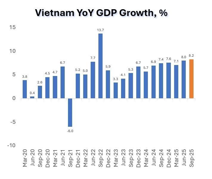 The second positive factor is the economic data. The Q3 economic data exceeded expectations, with quarterly growth of 8.2%. The recent quarterly growth rates have been on par with India, making it one of the fastest-growing major economies currently.