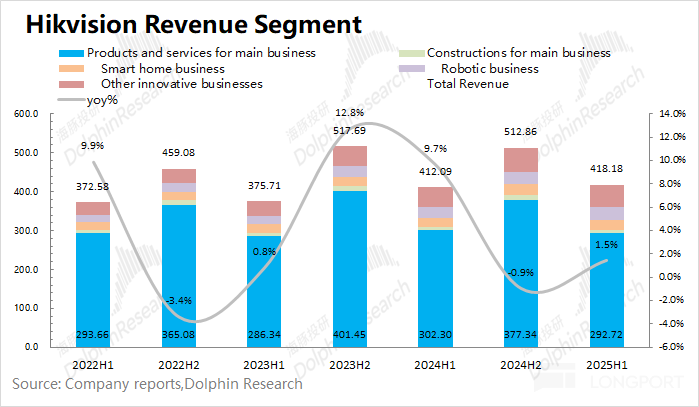 Considering the business situation in the first half of the year, $HIKVISION(002415.SZ) the current growth mainly comes from innovative businesses, while domestic main businesses are still affected by tightened government payments and macroeconomic factors, with related demand remaining relatively weak.