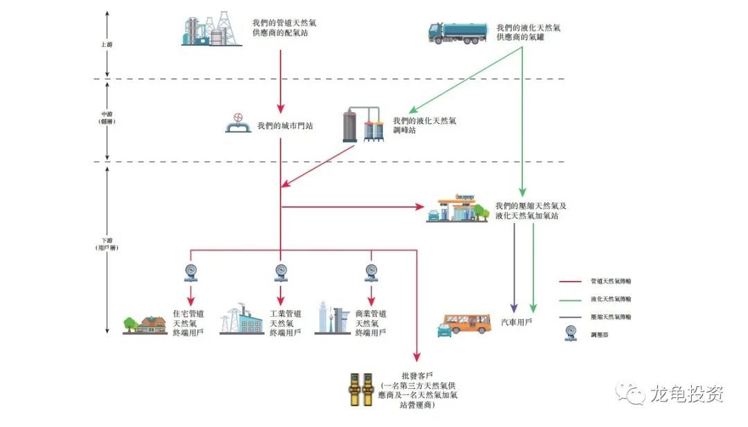 公司主要自以下各项产生收益:1、销售管道天然气,主要透过公司的城市管道网络向经营区域内的管道天然气终端用户销售;2、在公司的压缩天然气及液化天然气加气站销售压缩天然气及液化天然气;3、提供建设及安装 服务;及 4、销售燃气器具。