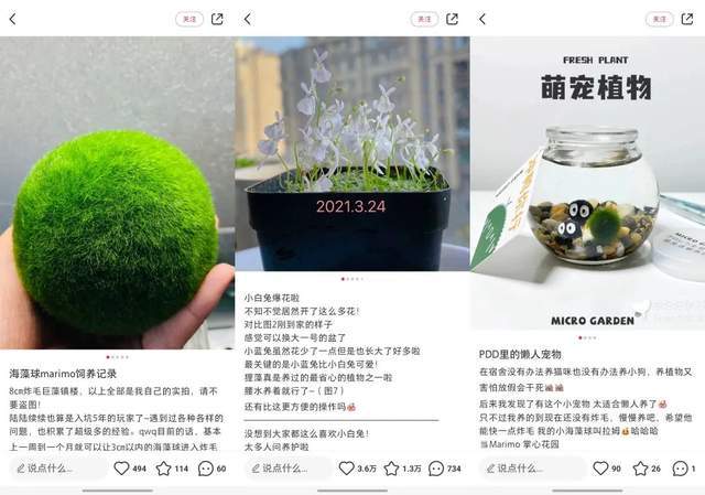 例如球藻、狸藻等藻类植物——在玻璃器皿或小盆里生长的它们,一周换一次水或者定时喷水湿润就能陪伴主人十几年甚至几十年。翠绿色、成球形的球藻和能长出 “小白兔” 模样的狸藻,在颜值上也并不输绿植、鲜花,不少网友在评论区留言 “被种草了” “很适合上班族,搞起来!”。