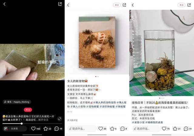 例如蛞蝓、螃蟹、海葵等要求少又耐得住寂寞的小动物——这些小动物安静、小只,除了需要一个小小的生态缸、生态瓶,每隔两三天的投食或者换水就能养活,甚至有网友称 “半个月忘了喂食,回家发现小螃蟹挖泥里的东西吃也活下来了”。