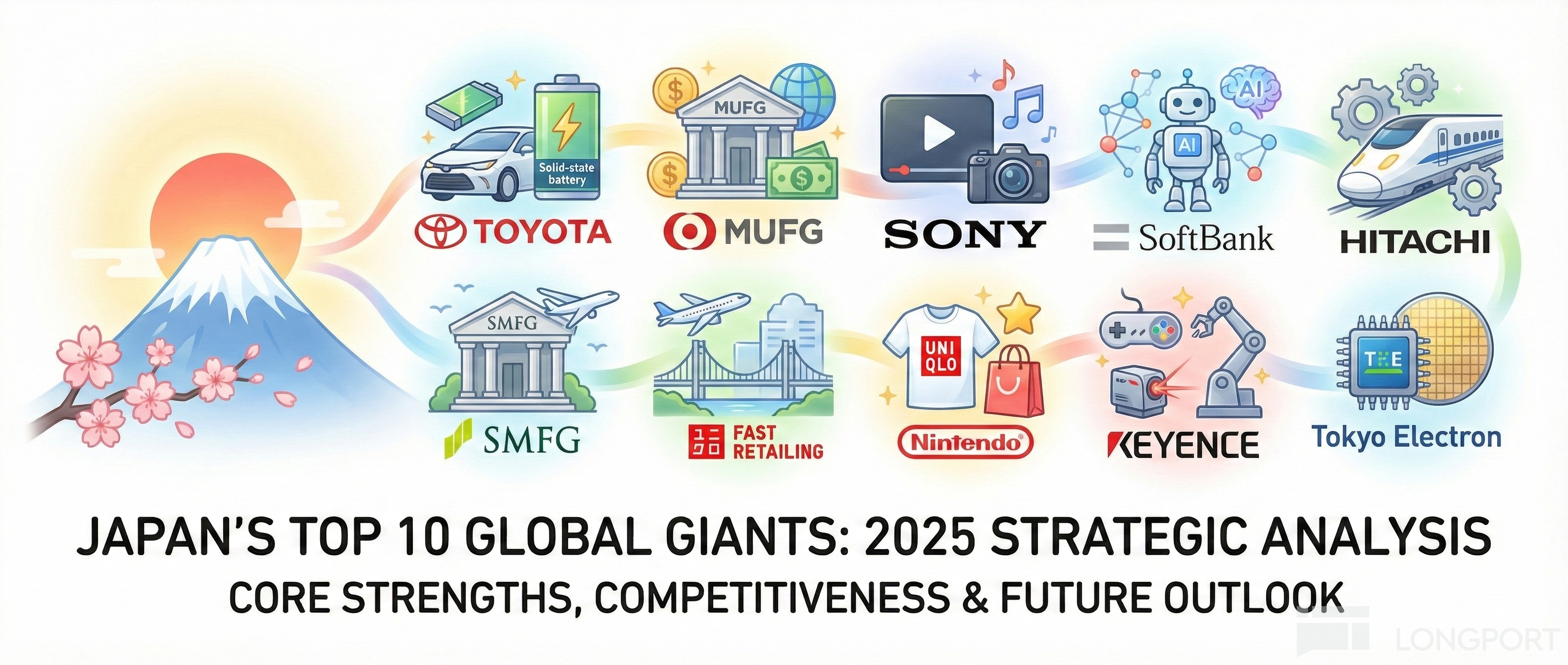 As of November 2025, the business landscape in Japan and globally is undergoing profound restructuring. Once seen as stagnant in growth, "Japan Inc." is reclaiming the spotlight in global capital markets through aggressive balance sheet restructuring, core business focus, and bold bets on next-generation technologies like all-solid-state batteries, generative AI, and advanced semiconductor packaging. This report provides an in-depth analysis of ten leading companies representing Japan's economic strength: Toyota Motor, Mitsubishi UFJ Financial Group (MUFG), Sony Group, SoftBank Group, Hitachi, Sumitomo Mitsui Financial Group (SMFG), Fast Retailing (Uniqlo), Nintendo, Keyence, and Tokyo Electron (TEL).