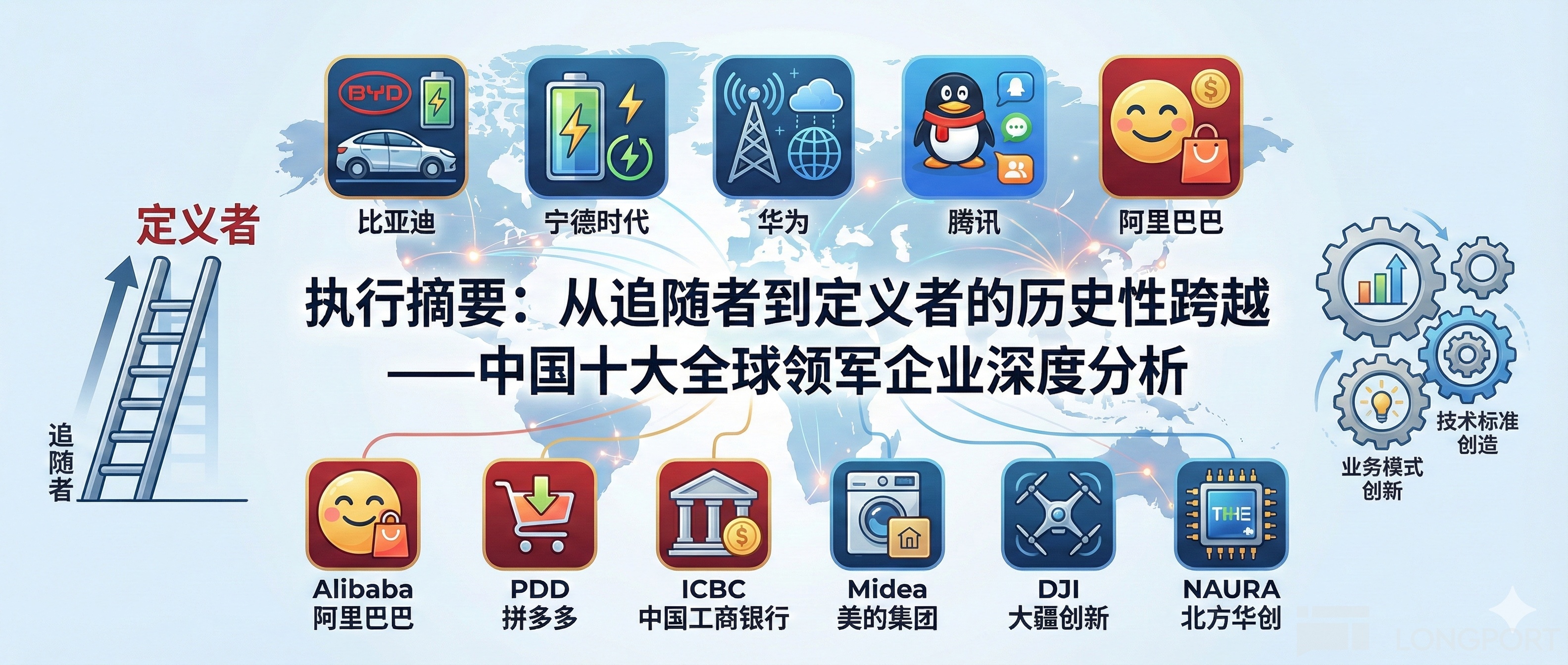 During the 2024-2025 period of dramatic global economic restructuring, the discussion about "whether China can produce globally dominant enterprises" has shifted from hypothetical possibilities to quantitative analysis of established facts. Based on exhaustive financial data, technical parameters, and market share analysis, this report identifies ten Chinese companies that not only match but in certain dimensions surpass traditional Western, Japanese, and Korean giants in terms of scale, technological barriers, supply chain control, and financial resilience. These ten companies—BYD, CATL, Huawei, Tencent, Alibaba, PDD Holdings, ICBC, Midea Group, DJI, and NAURA—constitute the core asset portfolio of China's transition from "demographic dividend" to "technological dividend."