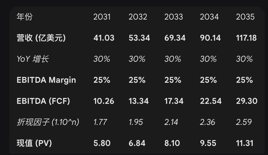 Given these fundamental shifts, I didn’t pull numbers out of thin air but built two discounted cash flow (DCF) + terminal value models. The logic is simple: discount the company’s future cash flows back to today. Inputs include revenue projections (based on IFP growth), margin assumptions (from losses to profitability), discount rates (reflecting risk), and terminal value (perpetual growth or multiples).