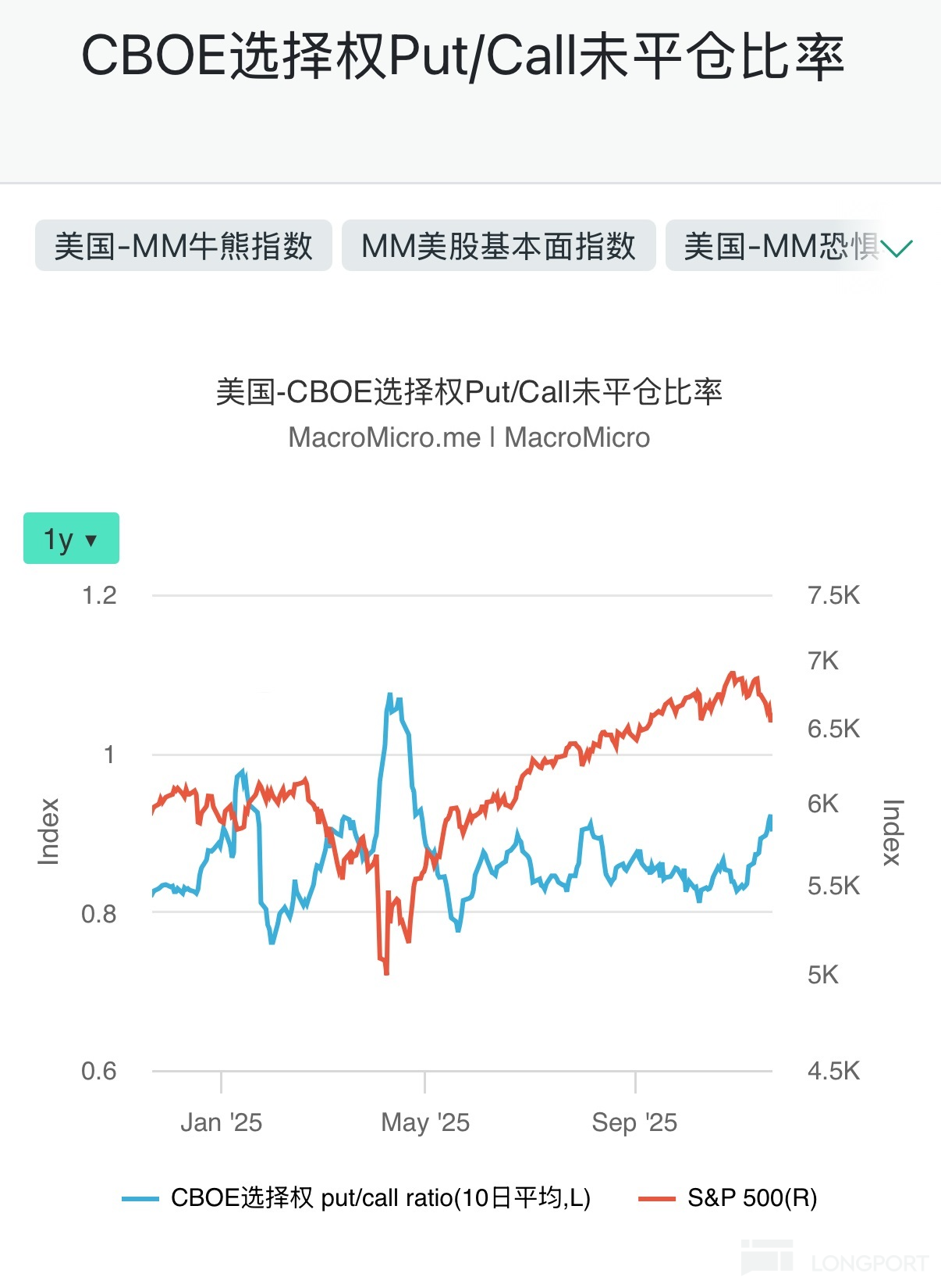 The Put/Call Ratio is an important market sentiment indicator used by the Chicago Board Options Exchange (CBOE). It measures the ratio of trading volume or open interest between put options (Put) and call options (Call), reflecting investors' bearish or bullish sentiment toward the market and thus gauging market sentiment (fear vs. greed).