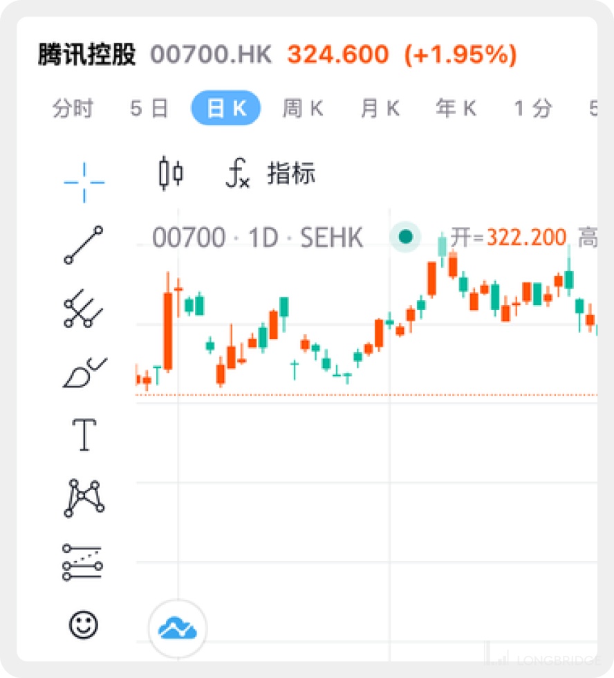 - 针对日 k、周 k、月 k、年 k 以及分钟 k 走势图,我们对接的 Trading View 图表,支持上百种技术指标,同时也支持十几种画线工具,方便满足不同技术分析者的偏好。