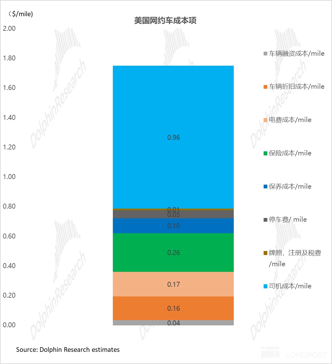 Dropping the driver eliminates the largest pain point. Holding other factors constant, base operating cost falls to ~$0.7–0.8/mile, i.e., the vehicle's hard operating cost, which already matches or undercuts US private-car usage.