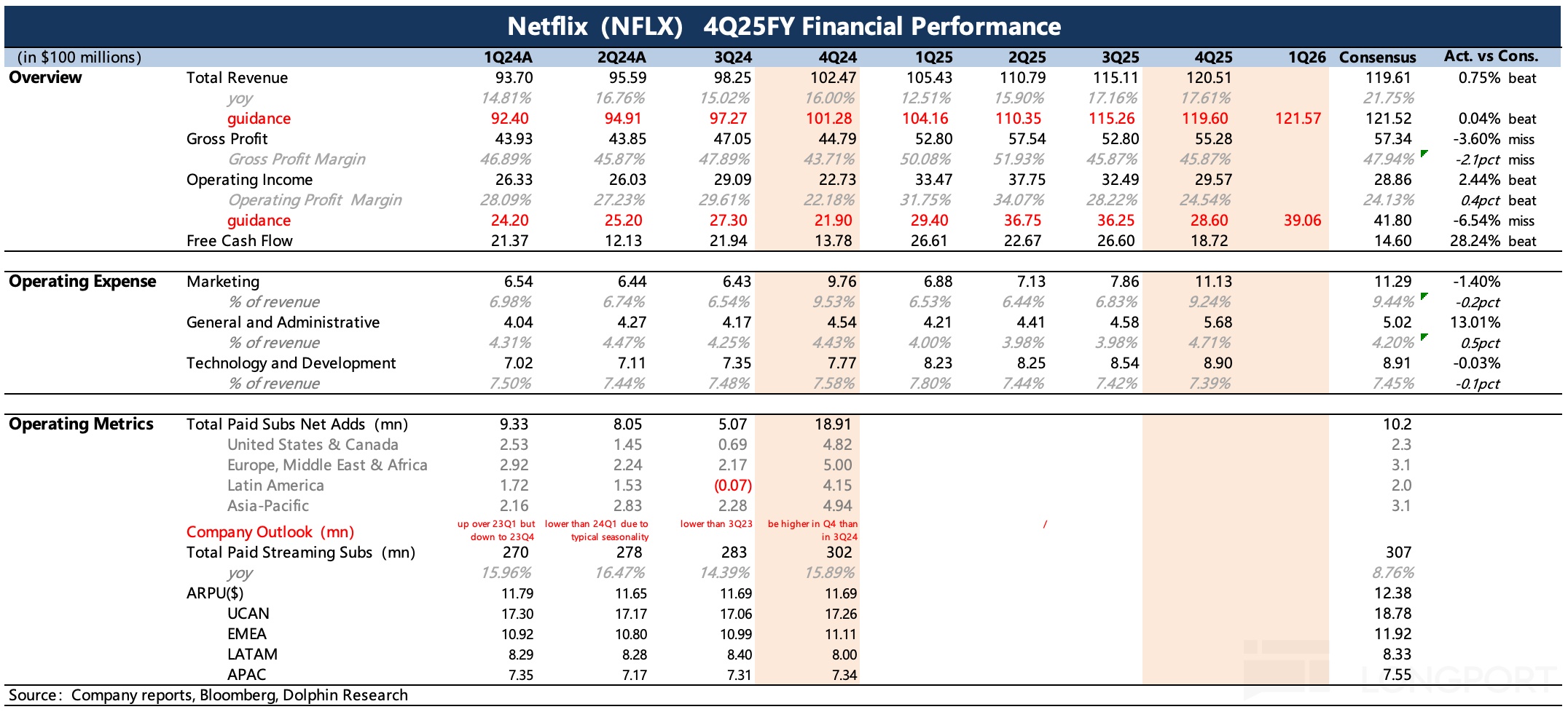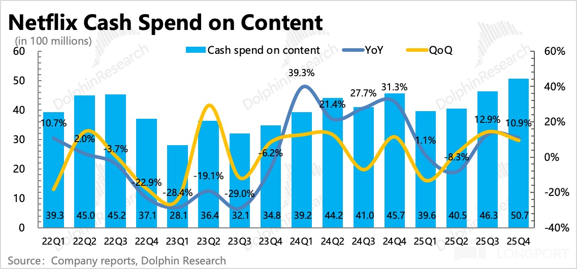 NFLX underperformed mega-cap tech in Q4, with the WBD megadeal as the spark. Back in Q3 review, Dolphin Research questioned the deal chatter, given Netflix’s long-held preference for builders over buyers.