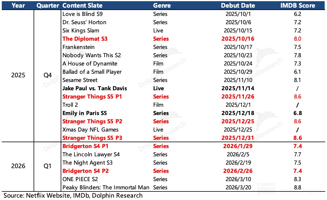 By year-end, Netflix stands at the tail of this content cycle. While hits remain, only a few S-tier new IPs have emerged over the past three years, such as 'Squid Game' and 'Wednesday'.