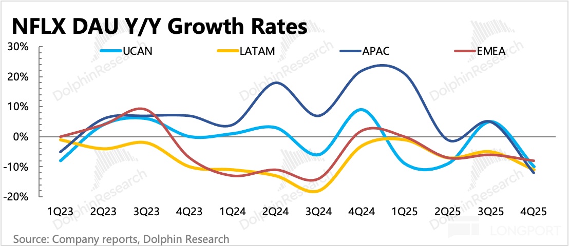 Price increases across NA and Europe in early 2025 showed up clearly in Q4. In less mature regions, hikes can easily pressure scale, so Netflix raises prices less frequently; in 4Q25, it hiked Argentina for the third time in a year to offset FX.