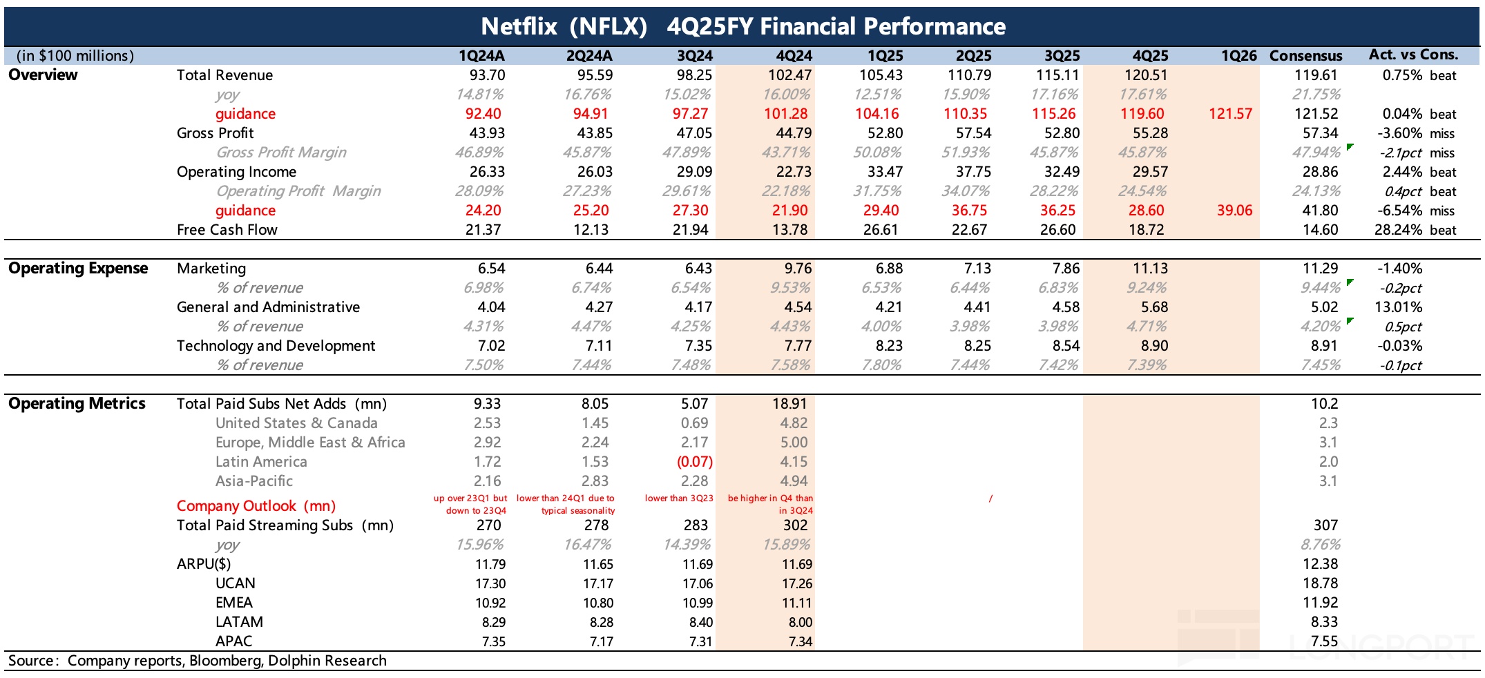Below is Dolphin Research's Trans of $Netflix(NFLX.US) FY25Q4 earnings call. For our First Take, see 'Netflix: Did M&A Sink the King of Series? Time to Test Conviction Again'.