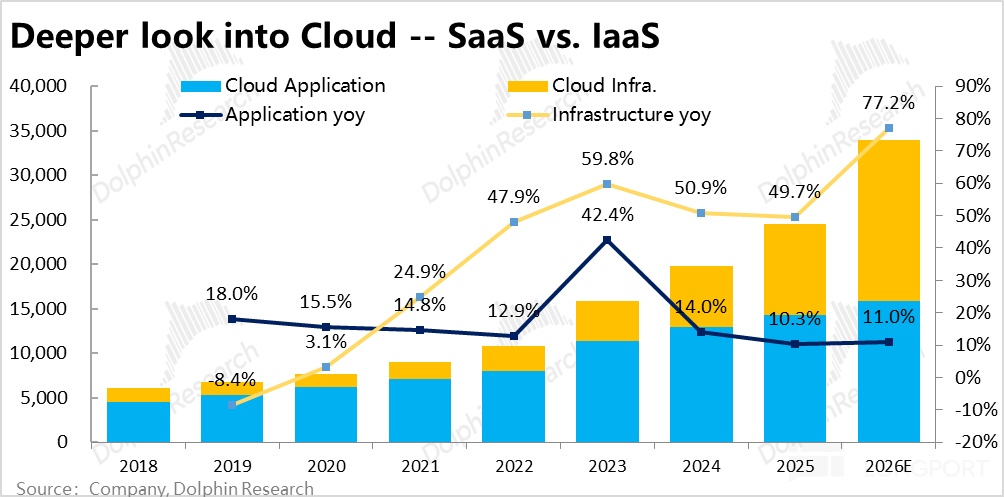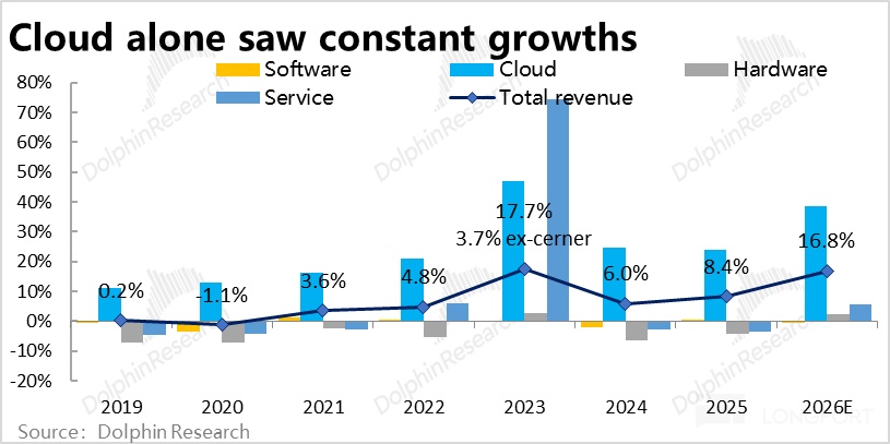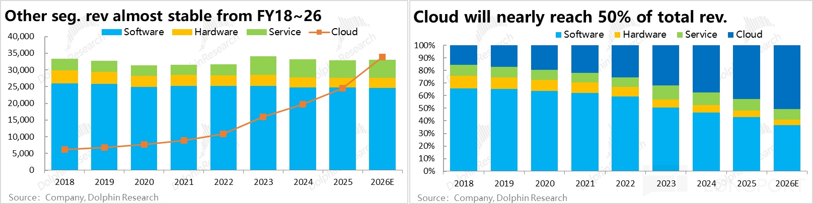 b. Cloud is the only growth driver in recent years. In FY26 it will exceed 50% of total revenue, becoming the largest and fastest-growing core segment.