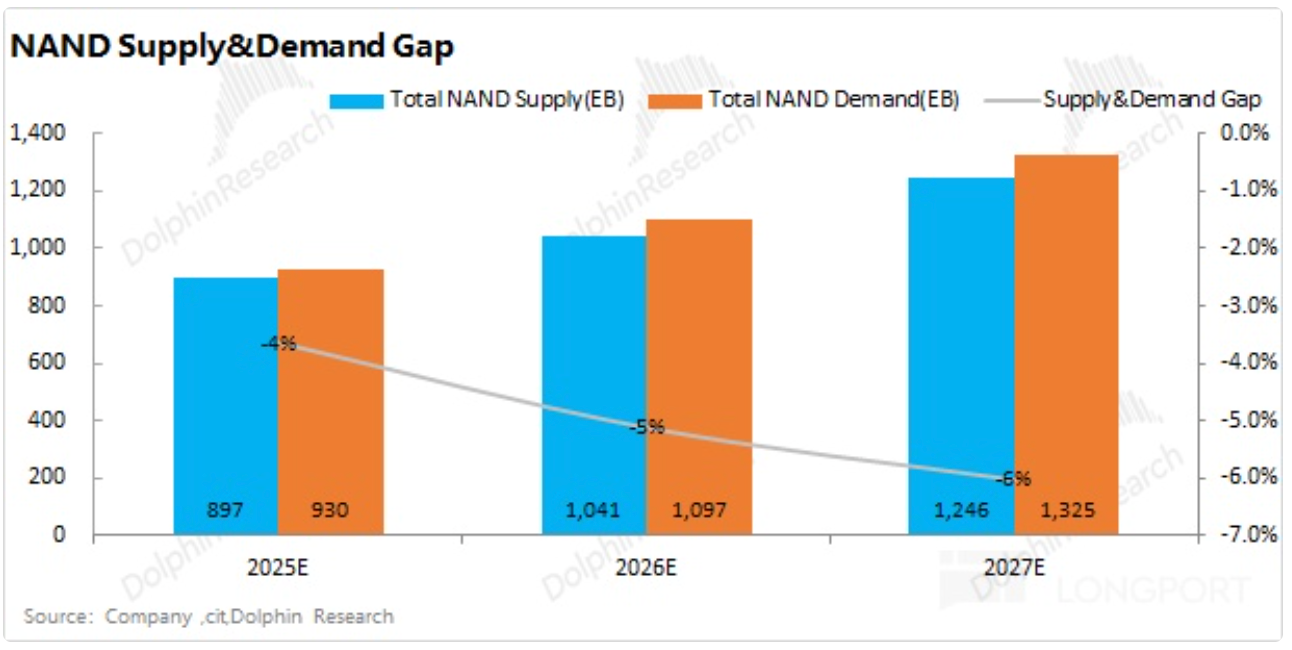Second, NAND competition is more fragmented than DRAM. Beyond the big three, players like Kioxia and SanDisk matter; if one supplier ramps and others don’t follow, it risks putting itself at a disadvantage. Meanwhile, the big three are prioritizing capex for DRAM and HBM, leaving limited budgets for NAND, which naturally curbs large-scale expansion.
