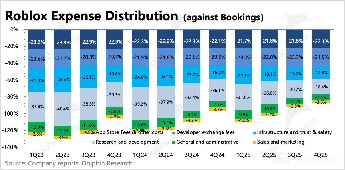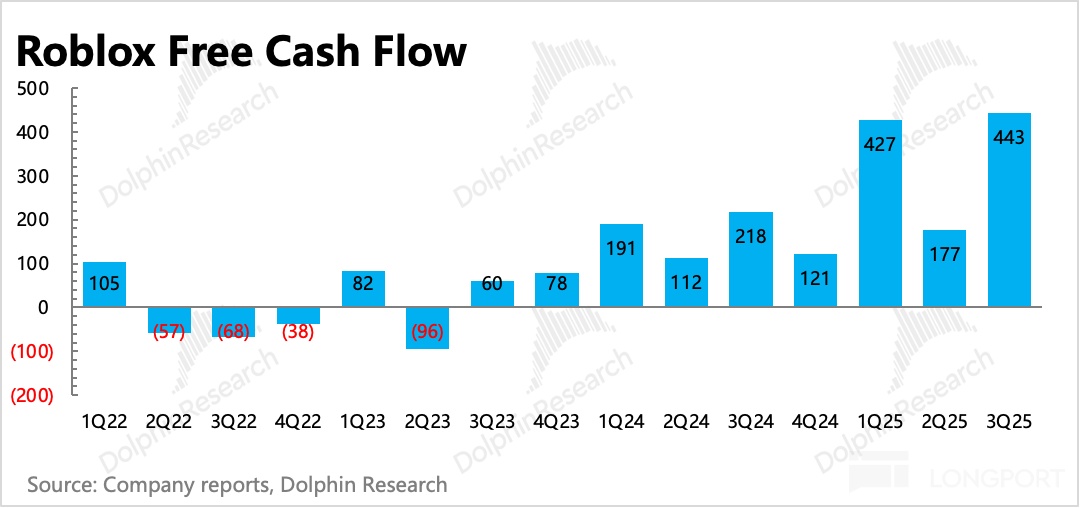 High Bookings growth was driven by Robux purchases and the commercial advertising launched last year. In the short term, ads may dilute ARPU (calculated by Bookings/DAU), but they reduce reliance on pure user spending.