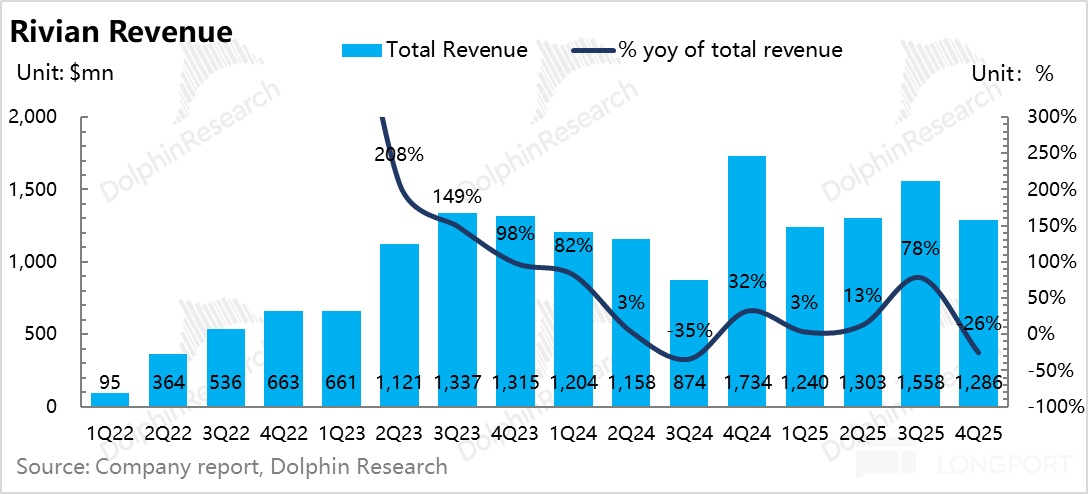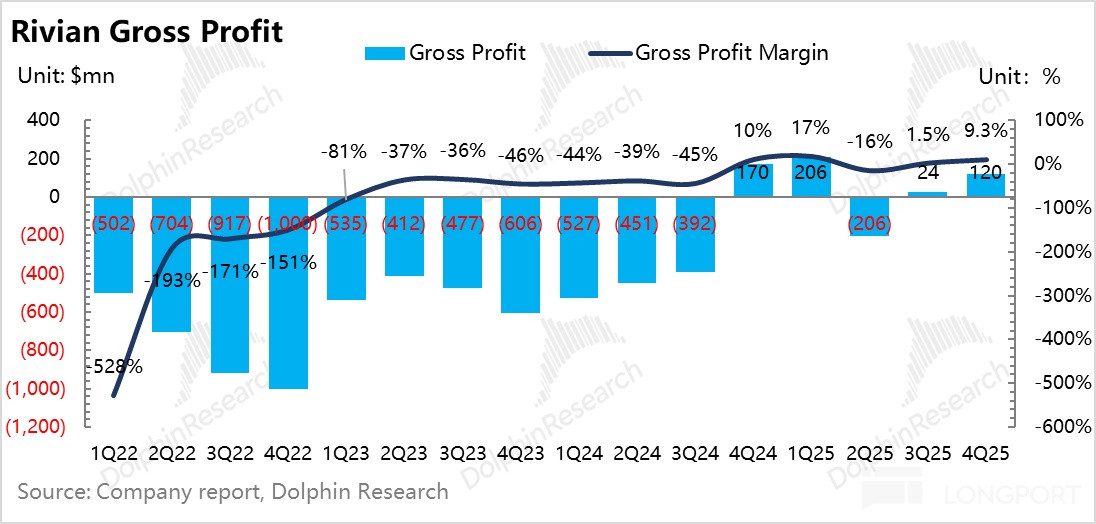 Against a low bar, Rivian delivered a solid print. With IRA rollback weighing on the U.S. market in Q4, industry volumes softened across the board, including Tesla, and Rivian also hit a delivery trough. Even so, revenue and profit both beat expectations, and both GPM and NPM improved QoQ. This underscores decent cost control in a tough backdrop.