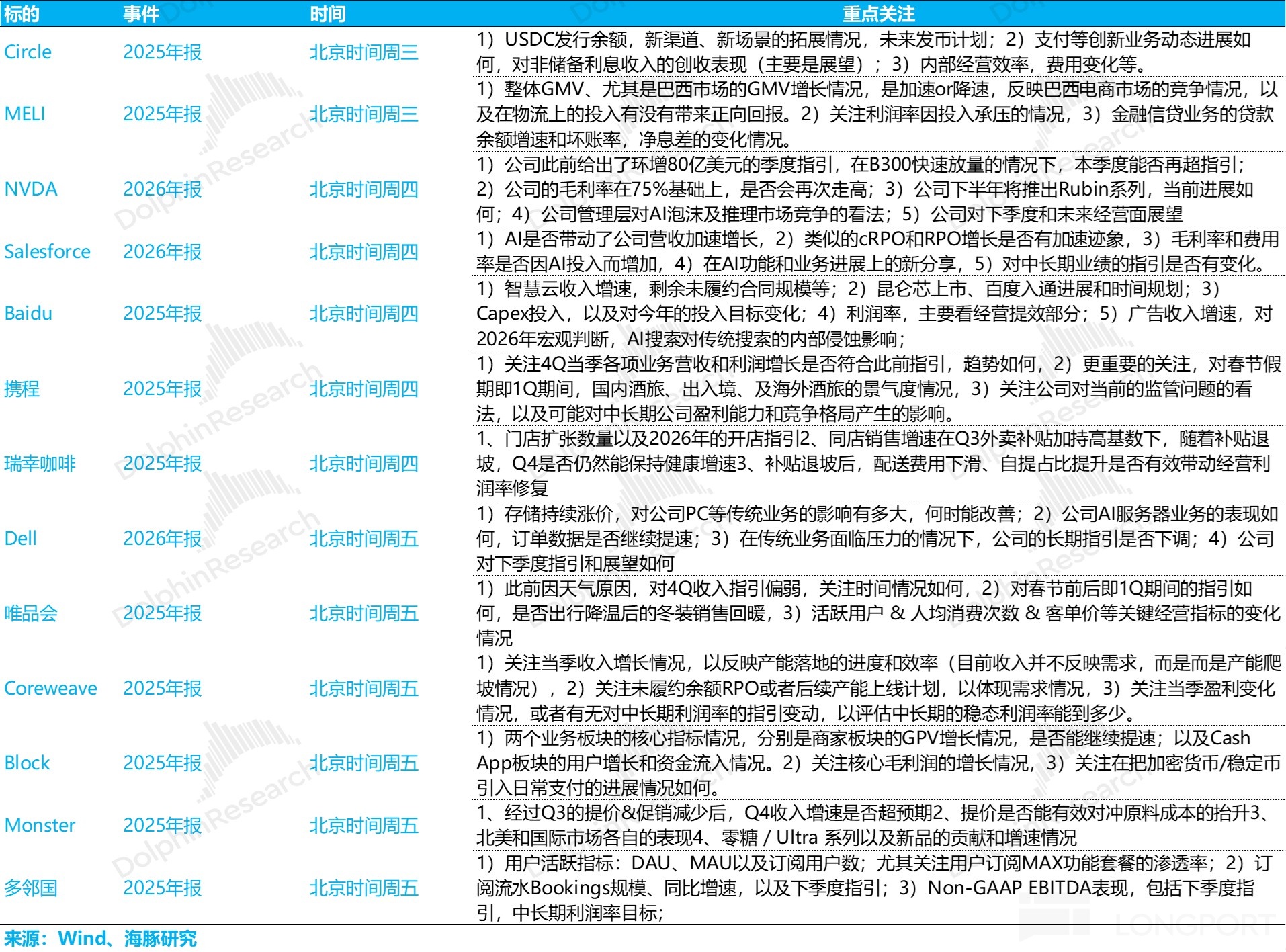 Key focus: NVDA and beaten-down software leader CRM. For China ADRs, watch BIDU (Kunlun chip and Robotaxi updates), TCOM (CNY consumption guidance and its view on 2026 services consumption), and Luckin Coffee for the impact of ongoing promo wars on fresh tea drinks and coffee beverages.