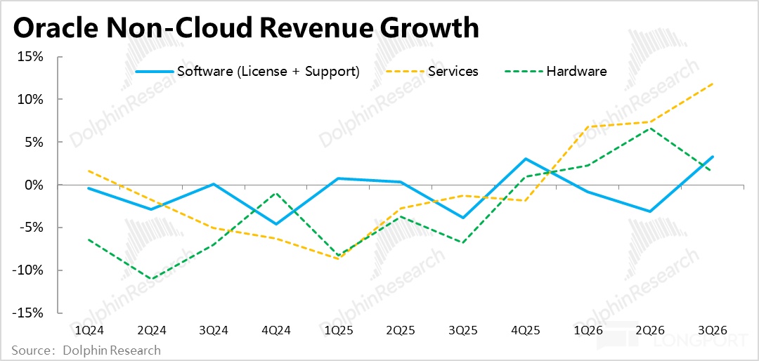 Only Consulting improved meaningfully, benefiting from OCI-led deployment demand, with growth accelerating and surpassing 10% this quarter. The contribution is still small, so the overall impact is limited.