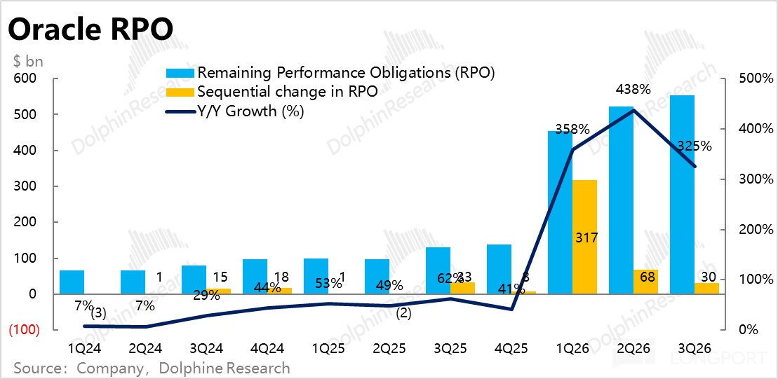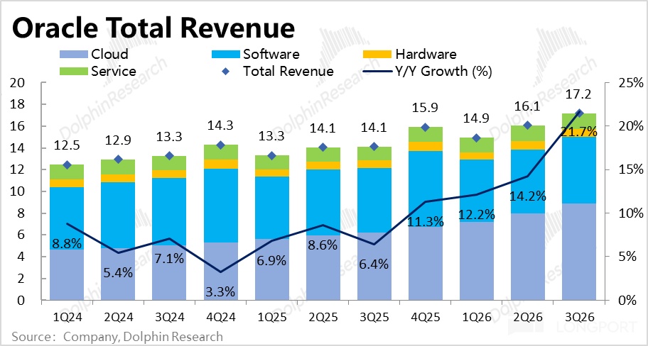 Among the four hyperscalers, $Oracle(ORCL.US) (ORCL) remains the most debated. Post-market, the company reported 3QFY26 (ended Feb) results. The print was mixed: database and compute capacity leasing under OCI stayed strong and re-accelerated, while GPM pressure was worse than expected, and both Capex and borrowings ramped faster than anticipated.