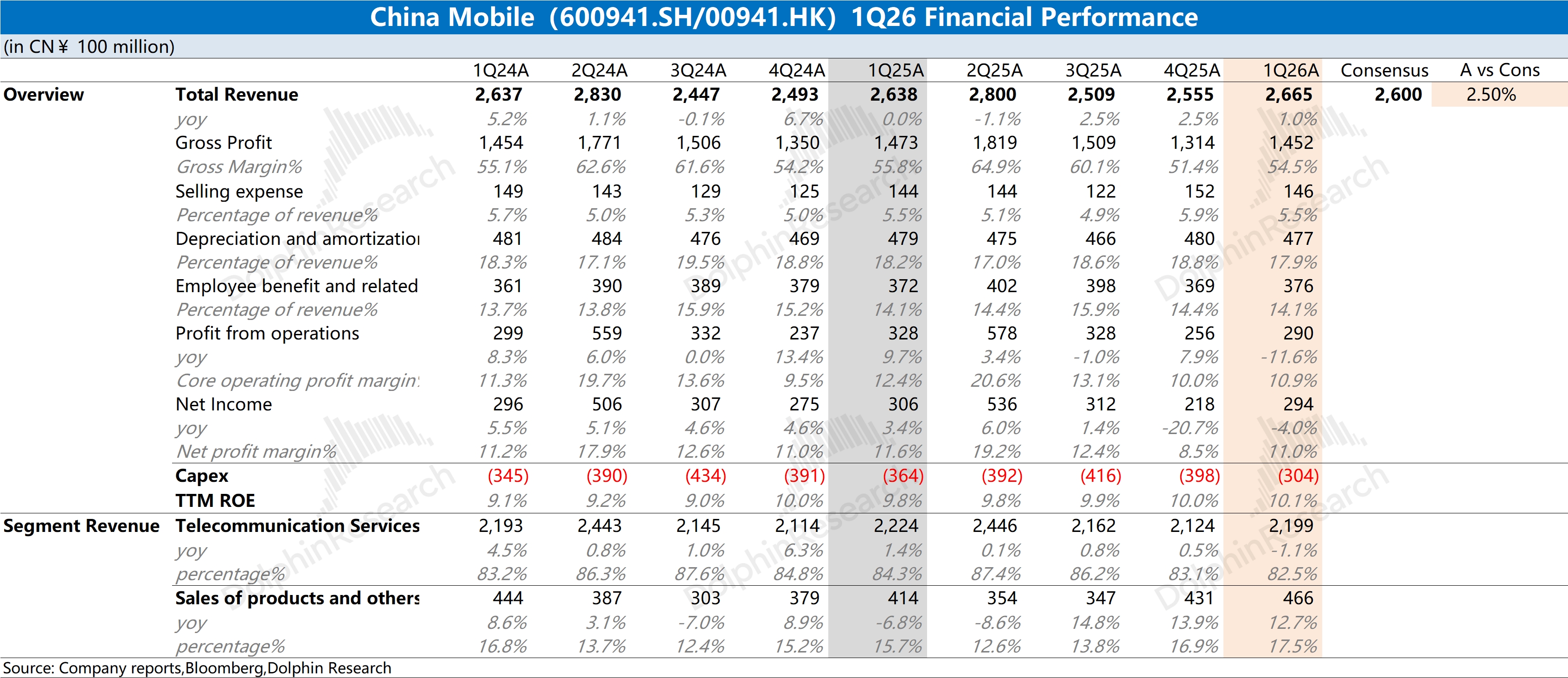China Mobile Q1 2026 First Take: revenue grew at a low single-digit pace, while profit declined on GPM compression and higher costs.