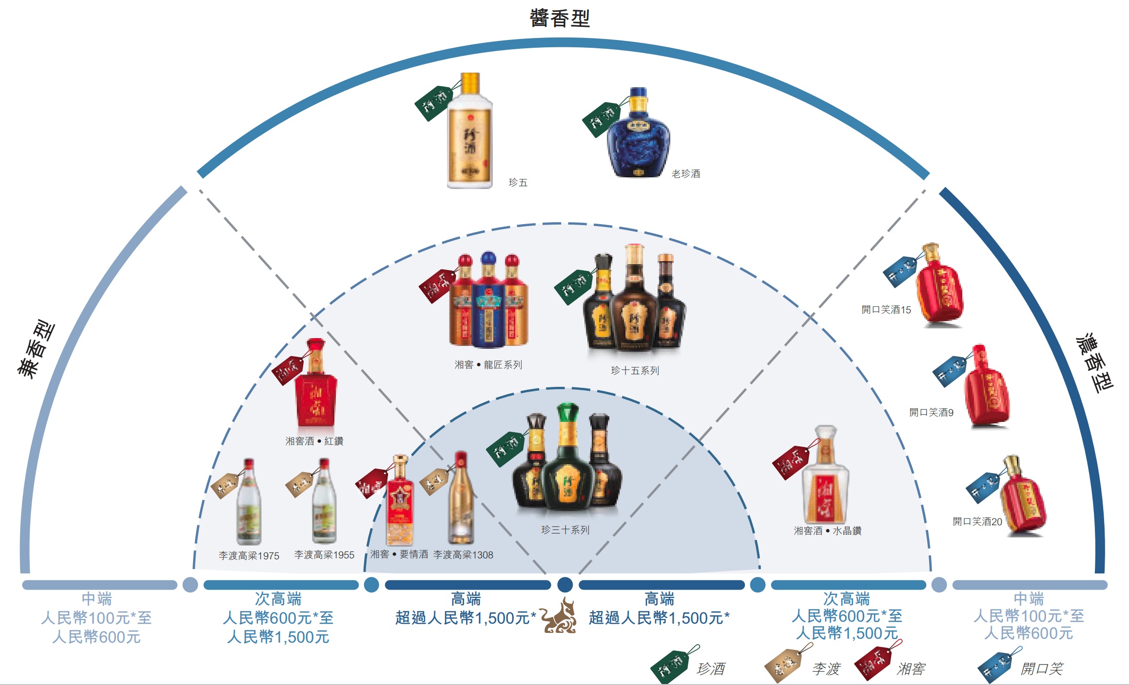 而珍酒李渡最早是从 20 年前收购湘窖,之后在 2009 年又收购了李渡和珍酒,因此珍酒李渡整个产品结构依然是从这三个品牌进行展开的,二狗哥会在后面讲到。