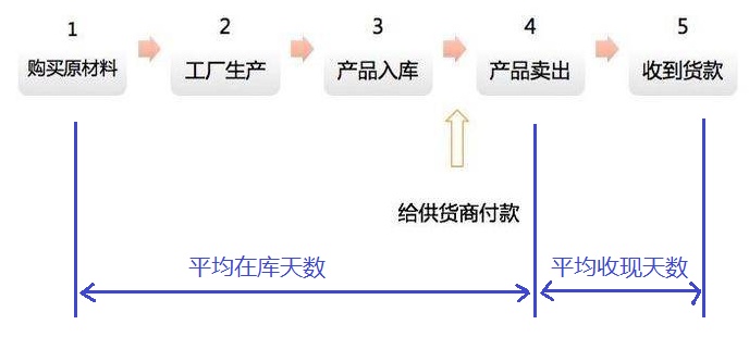 道理很简单,就是尽快地将库存销售出去并且收回现金,然后尽可能的拖慢要付给供应商的钱,就能达到借力使力的效果,也就是用供应商的钱来做生意。用四个字总结就是:“快收慢付”。
