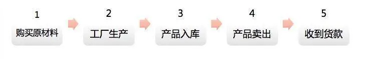 这个期间的主要任务是 “收钱”。所以,这段时间叫 “平均收现天数”。如果一个公司平均收现天数为 30 天,代表公司从卖出产品到收到货款平均天数为 30 天。大家看,从 1~5,就是做生意的完整周期,即: