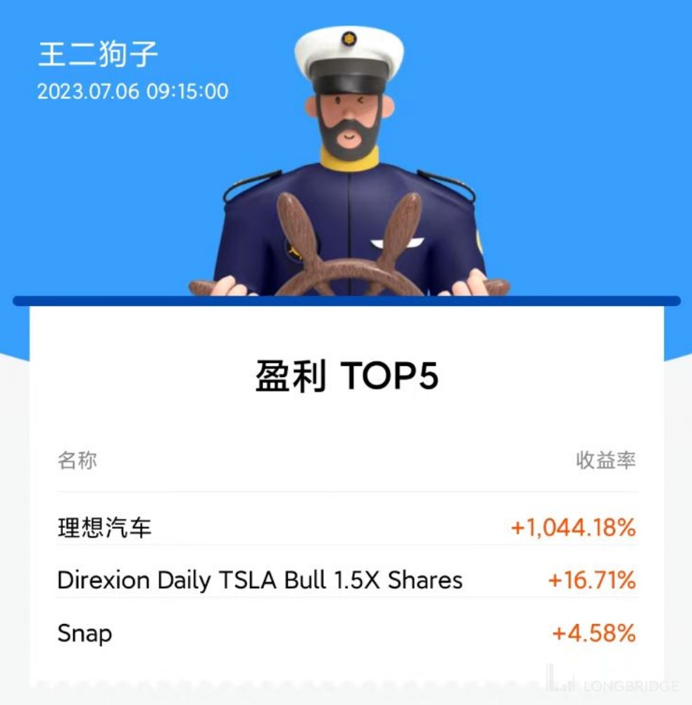 4、$Li Auto(LI.US) :了解二狗哥的都知道,理想是二狗哥一直都在唱多的股,买了很多次,也卖了很多次,这一次就清仓了,收益 5 倍?我有点怀疑,软件自己计算的,我感觉也就赚了 1 倍多吧。