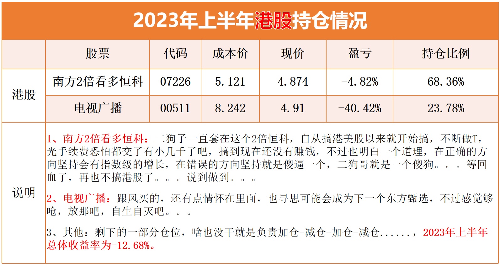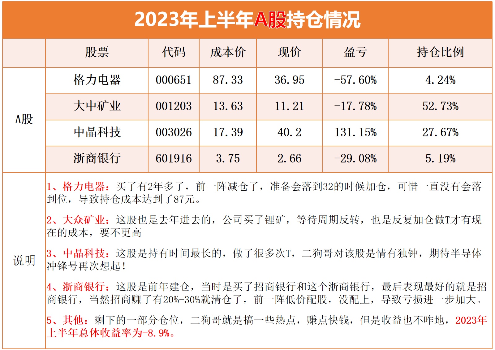 5、其他:剩下的一部分仓位,二狗哥就是搞一些热点,赚点快钱,但是收益也不咋地,2023 年上半年总体收益率为-8.9%。