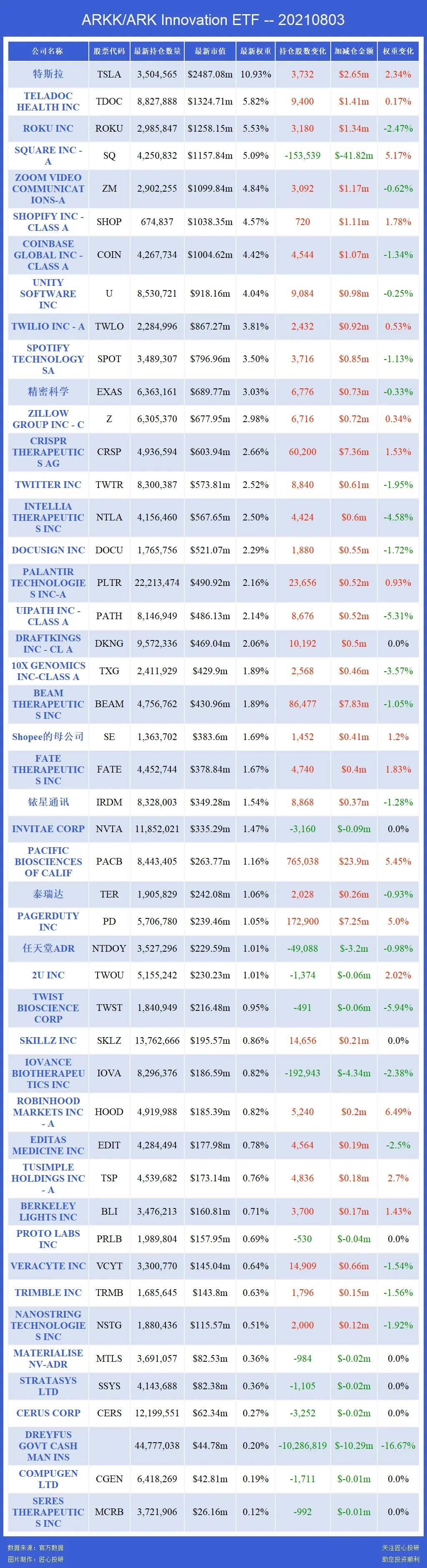 关注匠心投研,助您投资顺利,ARK 基金每天都会追踪!
