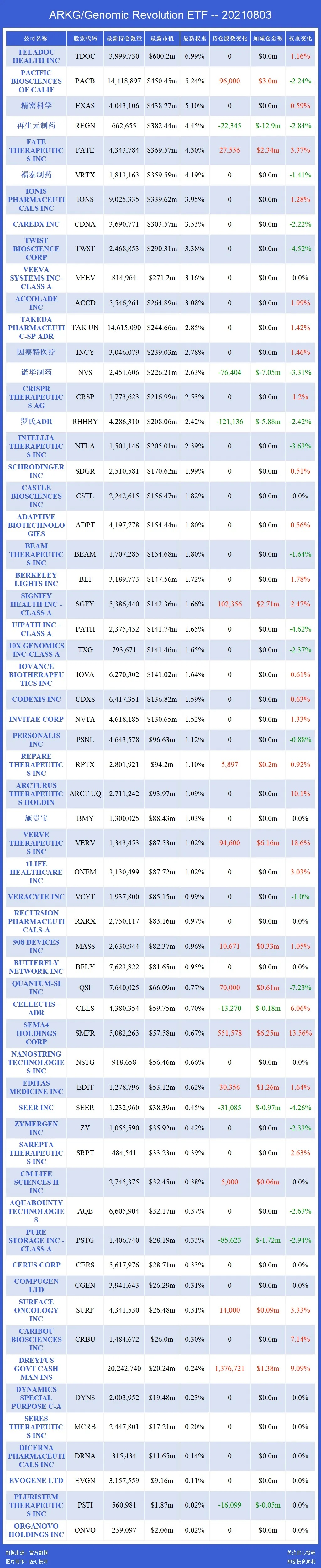 ARKG:ARK Genomic Revolution ETF 它重点关注在 基因科技相关的公司,比如基因编辑技术,靶向治疗,生物信息技术,分子诊断,干细胞等等