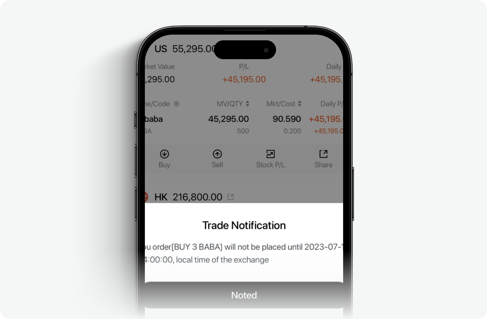 Based on market rules, this feature notifies users of the submission time for their off-market orders!